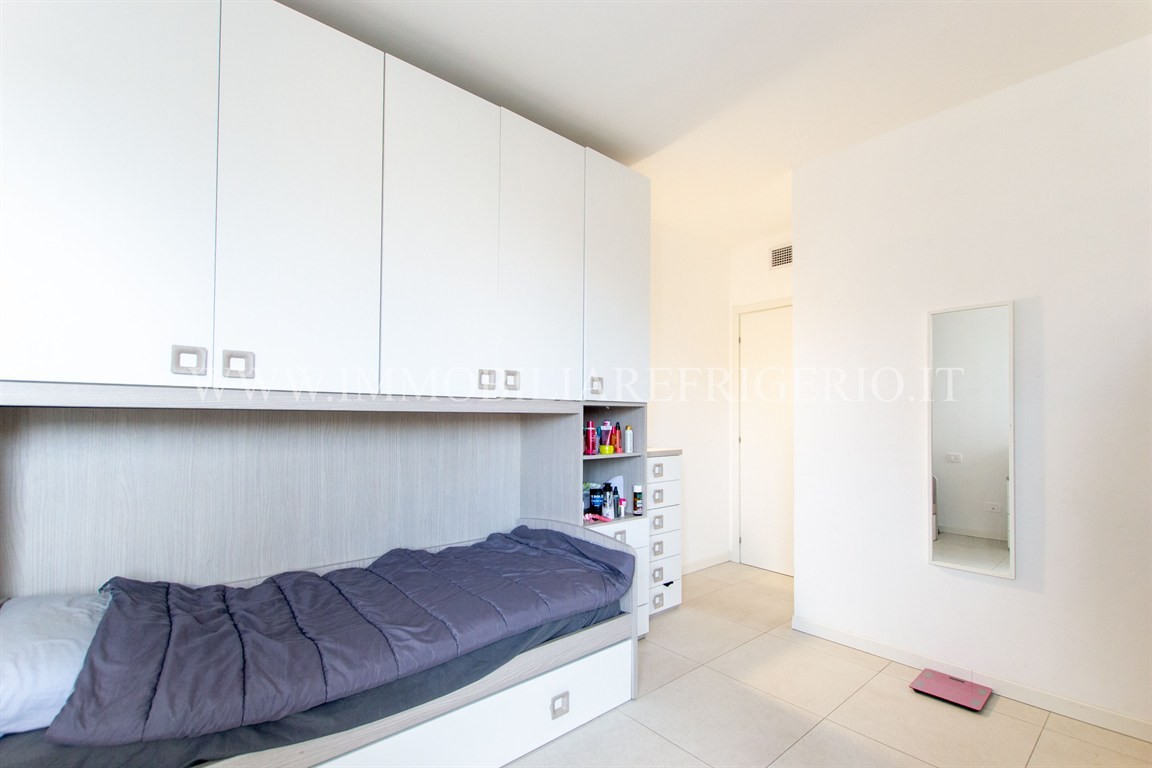 L'abitazione si apre su un accogliente ingresso che conduce alla zona giorno composta da soggiorno con cucina a vista. Un funzionale disimpegno collega le due camere da letto, il bagno moderno dotato di doccia e un pratico ripostiglio. L'immobile è progettato per offrire il massimo comfort abitativo grazie a dotazioni tecnologiche di rilievo come il riscaldamento autonomo a pavimento, l'impianto di aria condizionata, gli infissi in PVC con doppio vetro e le tapparelle elettriche. La proprietà è completata da una cantina al piano interrato, con la possibilità di abbinare un box auto secondo le proprie necessità.