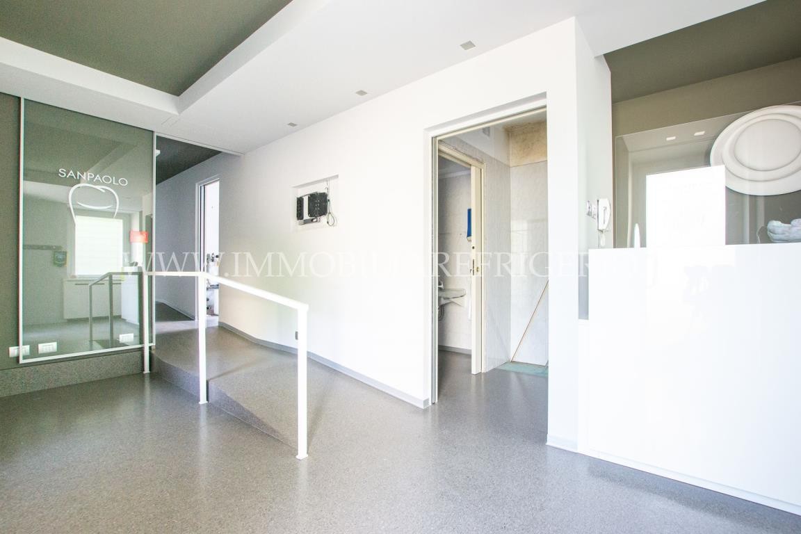 Su strada di passaggio, proponiamo al piano terra locale commerciale di circa 80 mq suddiviso come segue: ingresso con sala d'attesa, bagno per clienti con antibagno, quattro studi attrezzati con lavandini ed attacchi acqua e corrente a pavimento, spogliatoio con bagno per il personale, due locali pluriuso e locale tecnico. L'immobile è privo di barriere architettoniche.