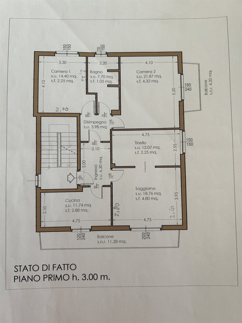In piccola palazzina di sole tre unità abitative, proponiamo in vendita ampio trilocale al primo piano, termoautonomo, completo di posto auto coperto.