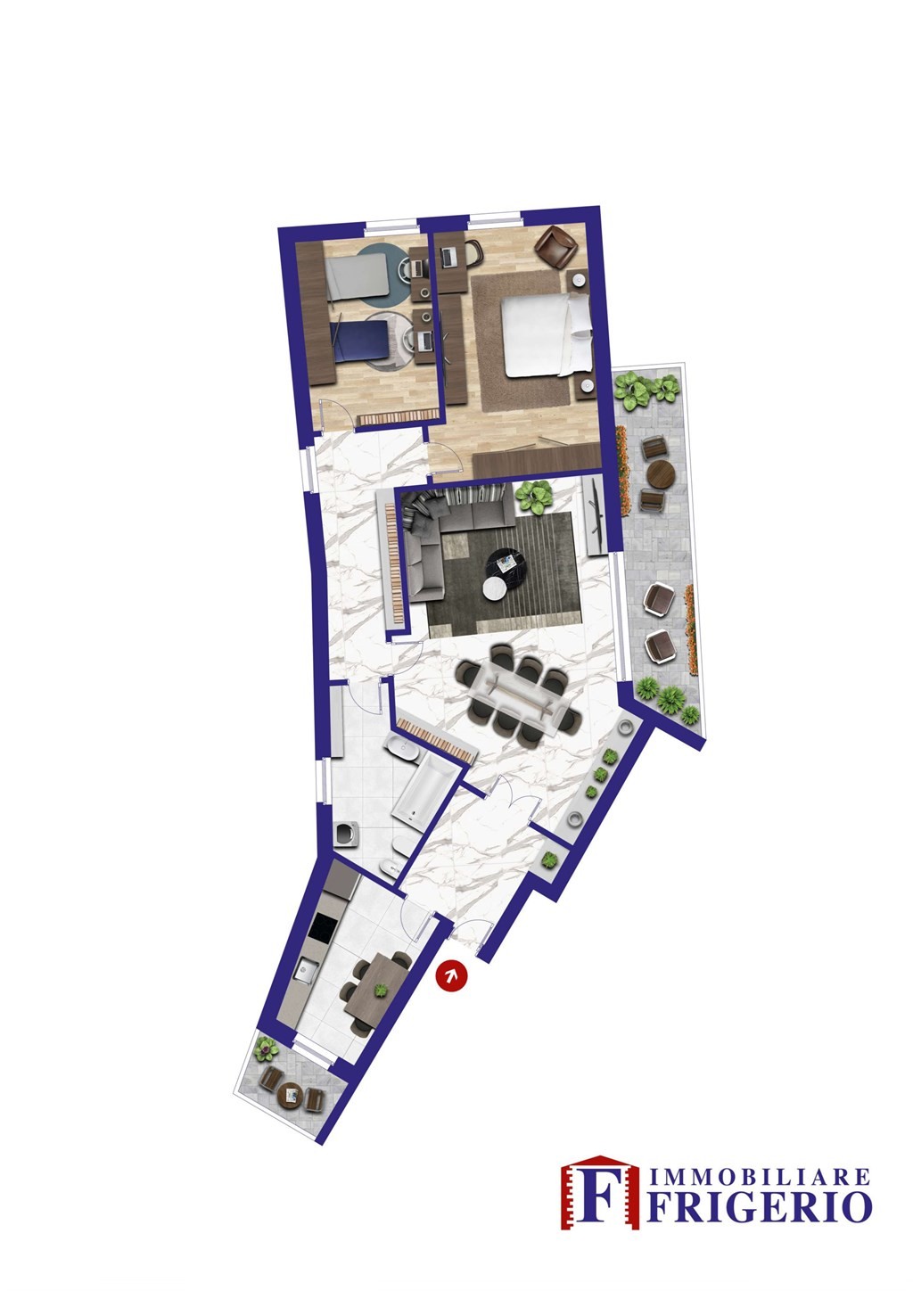 L'ingresso accogliente ti conduce in un soggiorno luminoso che si apre direttamente su un terrazzo ideale per i tuoi momenti di relax all'aperto, mentre la cucina abitabile separata gode di un pratico balcone di servizio. La zona notte è studiata per il massimo comfort con un disimpegno spazioso che serve una camera matrimoniale generosa, una cameretta perfetta per i figli o per uno studio e un bagno completo di vasca.