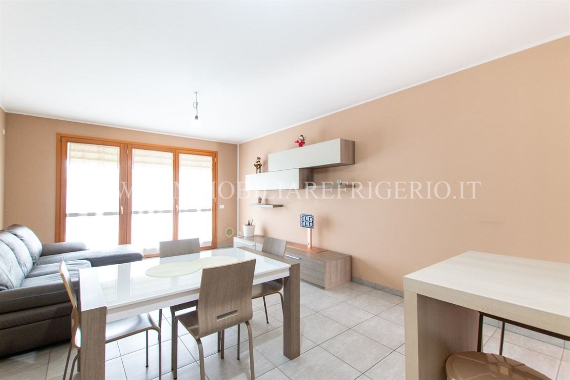 L'immobile è composto da: luminoso soggiorno con cucina a vista e uscita sul terrazzo, ripostiglio con zona lavanderia, disimpegno, camera matrimoniale con accesso diretto al giardino privato ora pavimentato, seconda camera da letto e bagno con doccia.