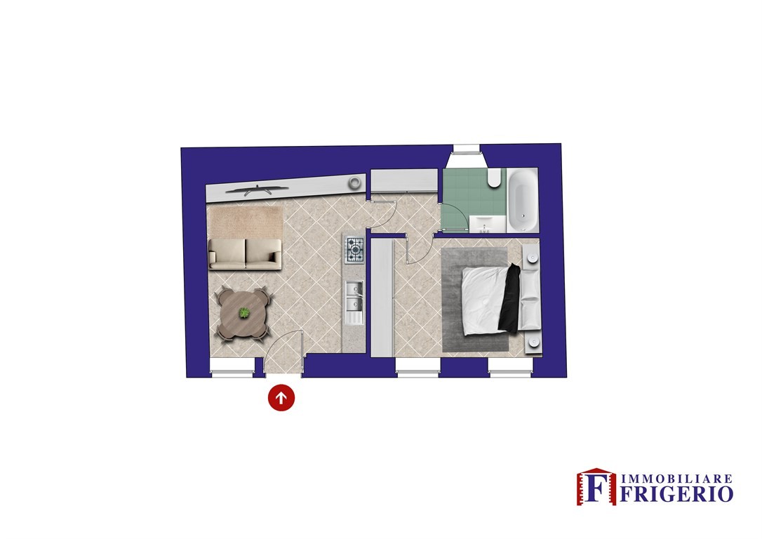 Proponiamo in vendita grazioso appartamento bilocale posto al piano terra con ingresso semindipendente, soluzione pratica e accogliente, composta dal soggiorno e cucina a vista, disimpegno, camera matrimoniale, bagno e intercapedine sfruttabile come cantina.