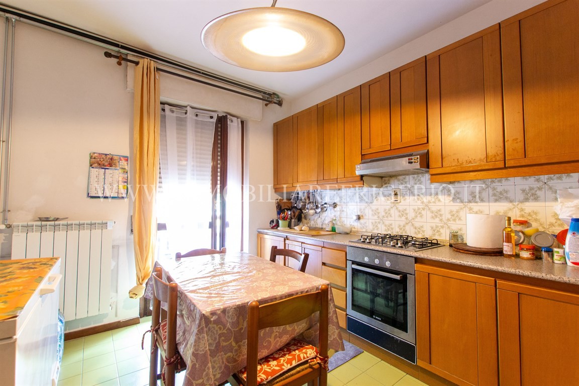 L’appartamento, posto al piano primo, è così composto: ingresso su spazioso soggiorno con balcone, cucina abitabile separata con secondo balcone, due camere da letto spaziose, bagno finestrato con vasca, disimpegno notte e comodo ripostiglio.