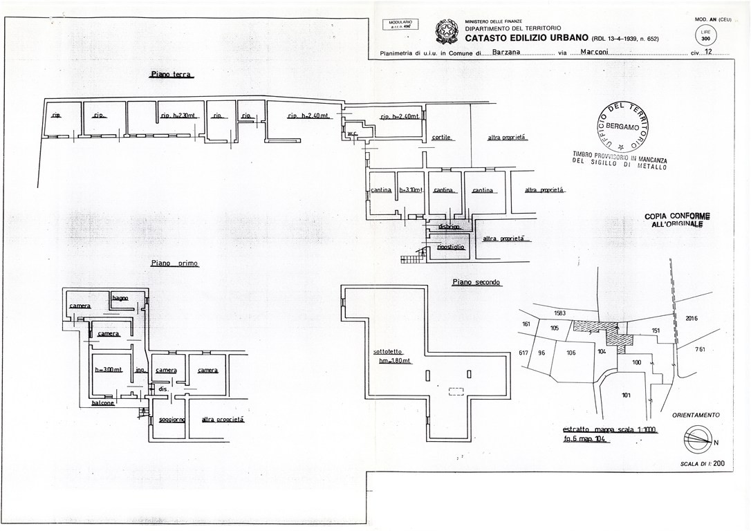 Sottotetto: di pari metratura rispetto ai piani sottostanti, con altezza media di circa 1,80 m, accessibile tramite botola interna, utilizzabile come spazio accessorio o deposito.