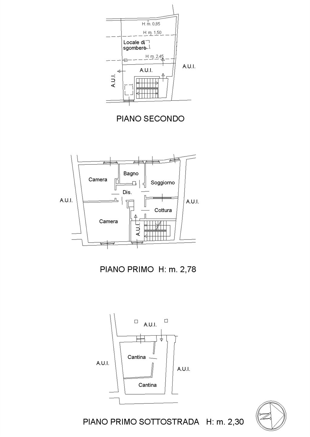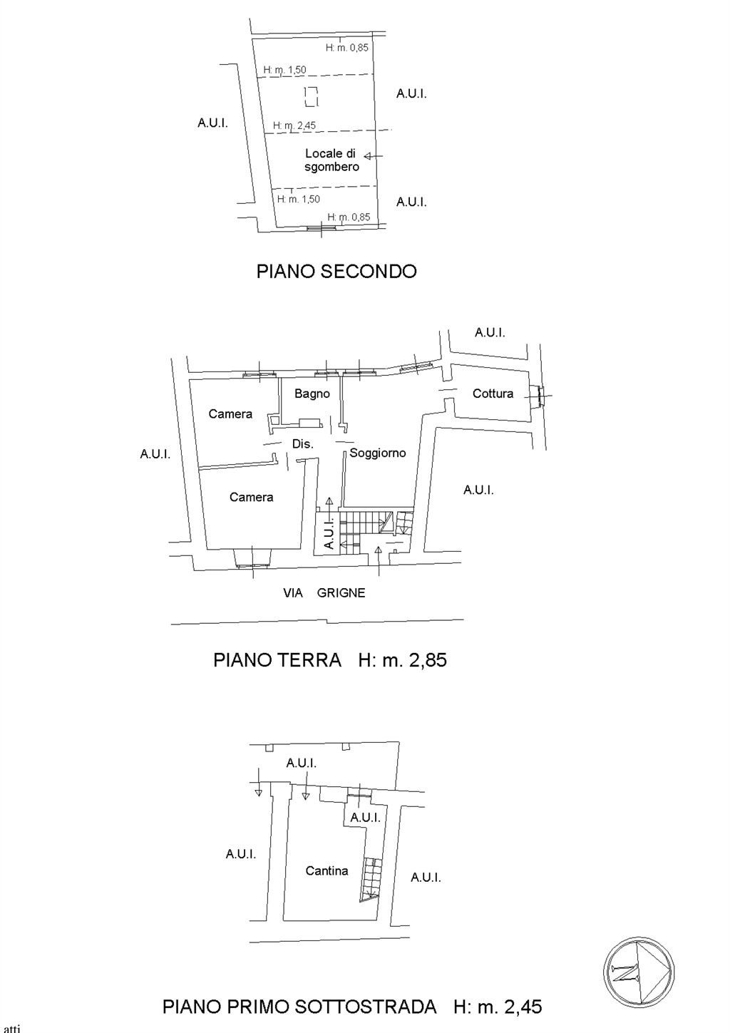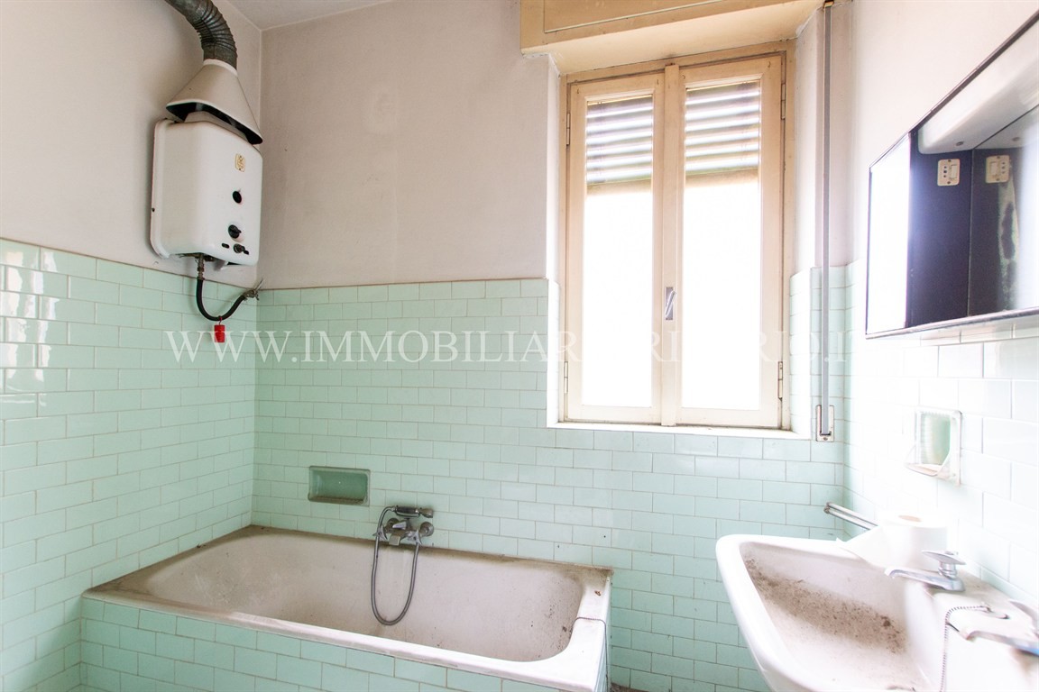 Al primo piano è presente un trilocale con finiture originarie ma in buono stato di manutenzione, dotato di impianti funzionanti, impianto di riscaldamento e serramenti in legno con vetro singolo.