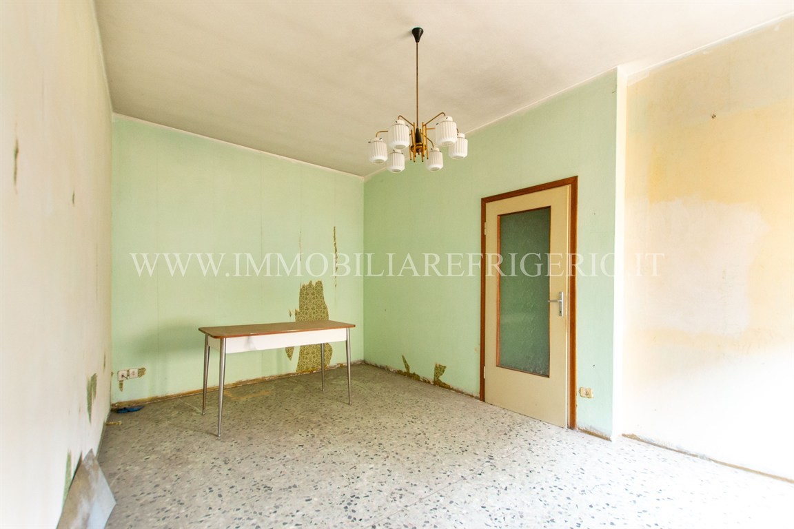 Al piano terra troviamo un trilocale completamente da ristrutturare, attualmente privo di impianto di riscaldamento e con serramenti in legno a vetro singolo.