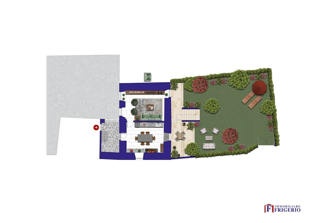 L’area esterna aggiunge un valore inestimabile alla proprietà grazie al cortile esclusivo che permette di parcheggiare comodamente fino a tre autovetture e al giardino privato, un’oasi verde perfetta per il gioco dei bambini, il relax o pranzi all'aperto.