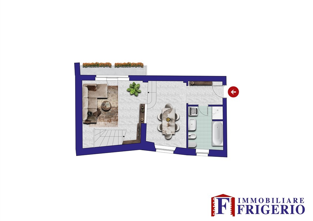 La struttura interna è sapientemente divisa in due unità abitative indipendenti ma collegate da una comoda scala interna: