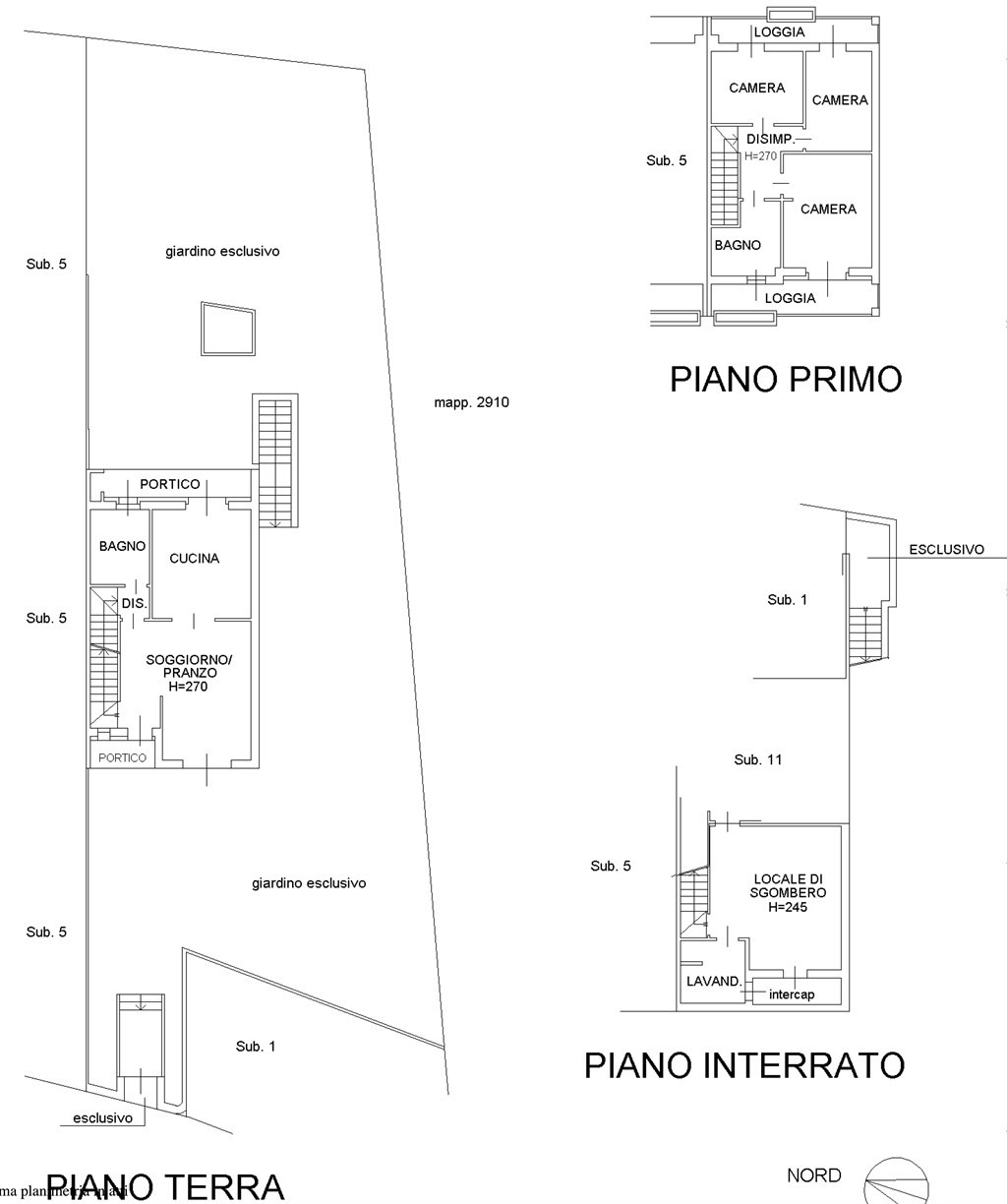 Al primo piano trovano spazio tre camere da letto, un bagno con vasca e due balconi che donano luce e ariosità agli ambienti.