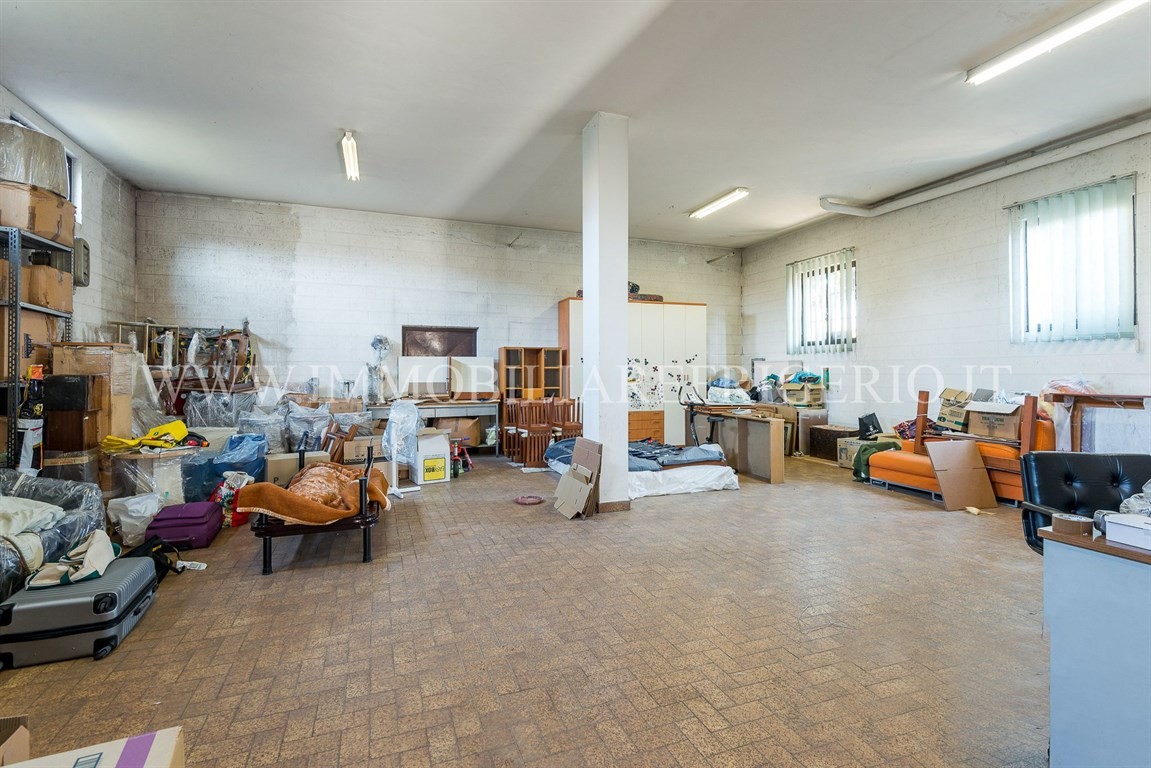 Al piano terra si trova un magazzino di circa 200 mq con altezze importanti (2,90 – 3,95 m), oltre a cantina, locale caldaia e spazi accessori, ideale anche per attività, hobby o deposito.