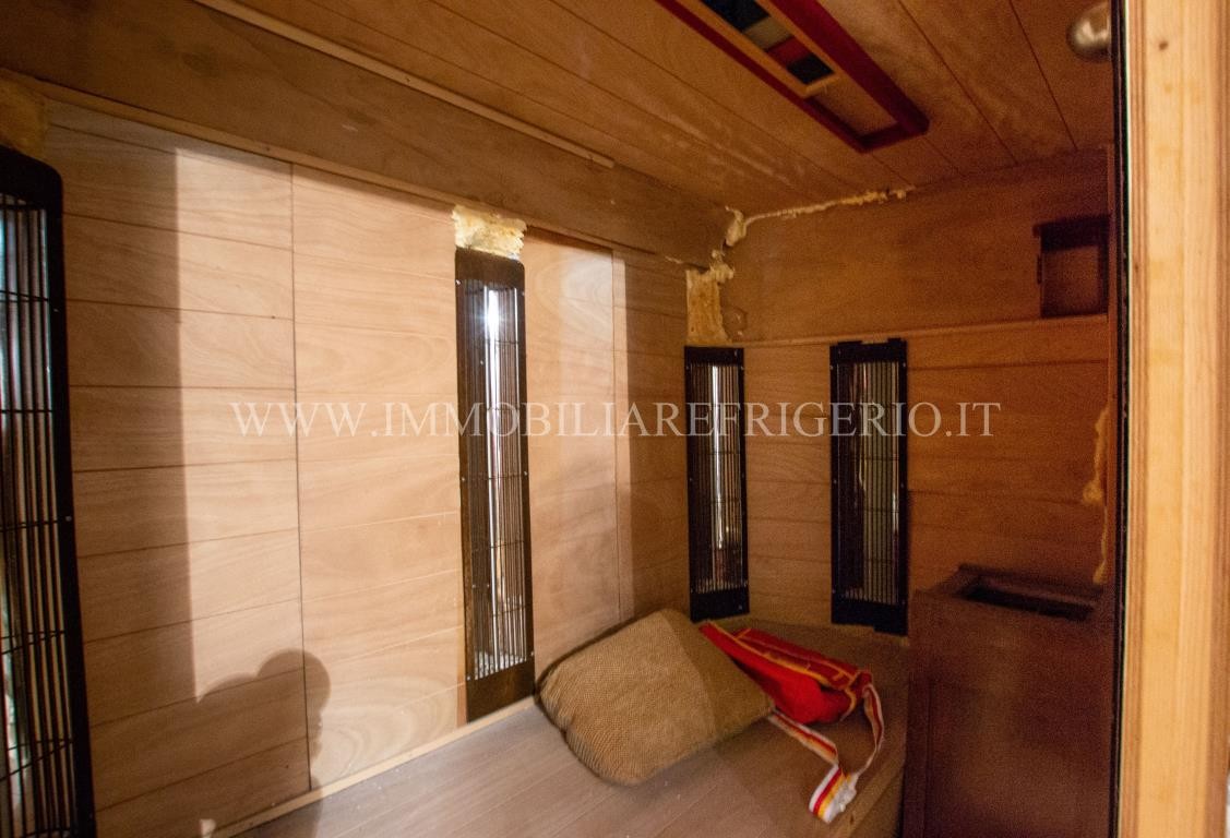 ingresso dal portico che porta al piano terra dove si dispone tutta la zona giorno composta da vano scala, luminoso studio, soggiorno, sala da pranzo con camino, cucina abitabile e bagno/lavanderia. Da questa zona si accede al piano seminterrato con locale tecnico, cantina e ulteriore locale dotato di sauna.