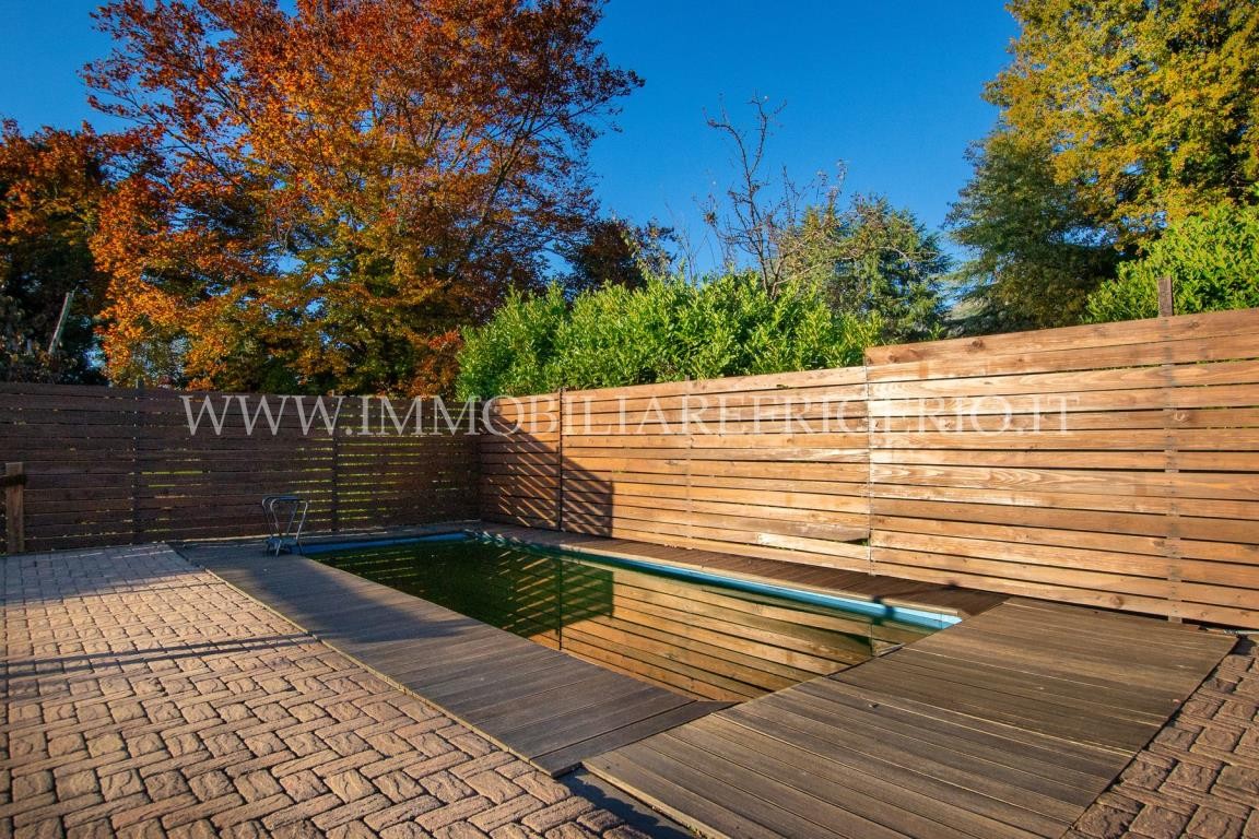 In splendida posizione panoramica, proponiamo in vendita una PORZIONE di villa bifamiliare recente e di grande fascino, disposta su un unico livello, circondata da 600 mq di terreno, divisi tra: giardino, veranda, pergolati e una splendida piscina interrata.