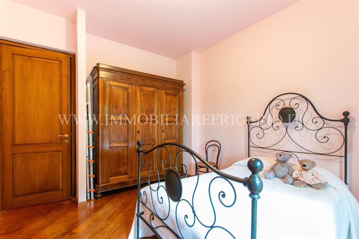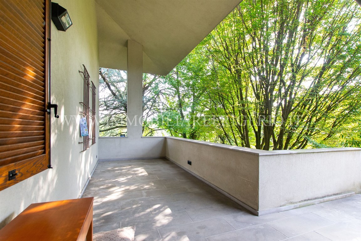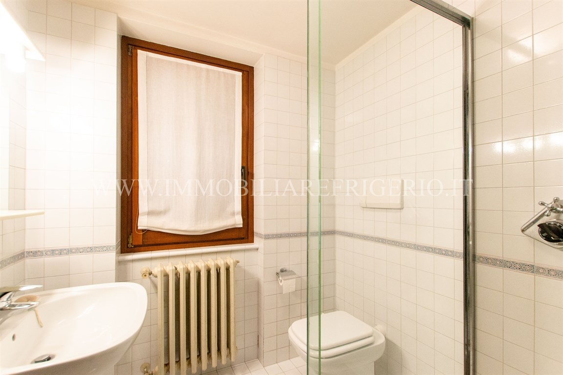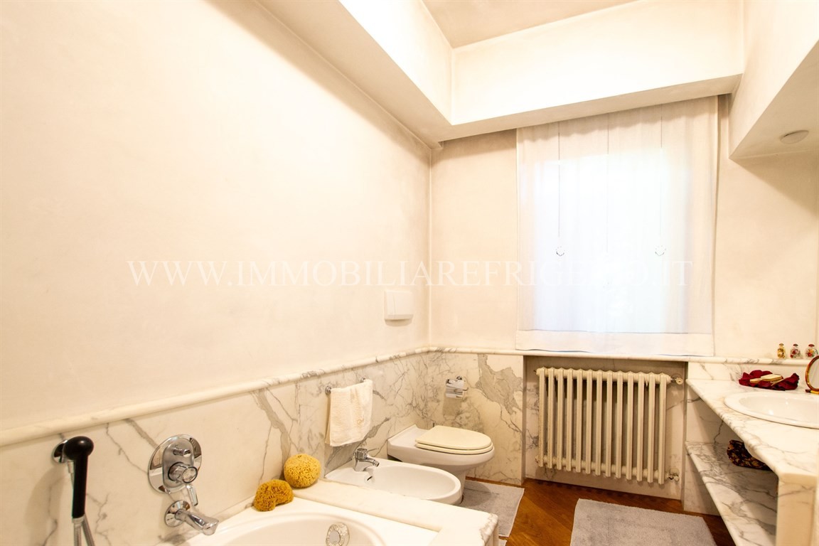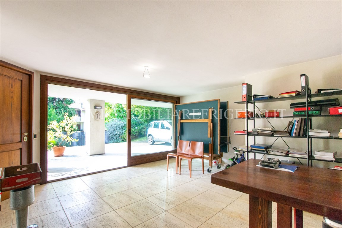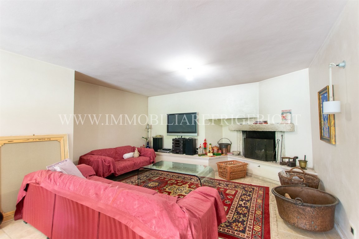 Ogni dettaglio racconta la qualità della ristrutturazione: i pavimenti in Tec nella zona giorno, Cotto a mano smaltato in cucina, Travertino di notevole fattura in taverna, i bagni in Marmo bianco di Carrara, lo stesso marmo che riveste l’elegante ingresso e la scala di collegamento al piano superiore. Gli infissi in legno di Rovere con doppio vetro e le persiane, anch’esse in Rovere.