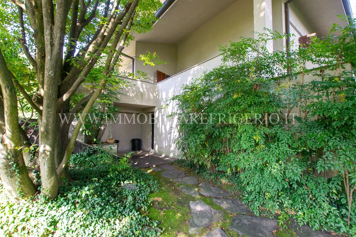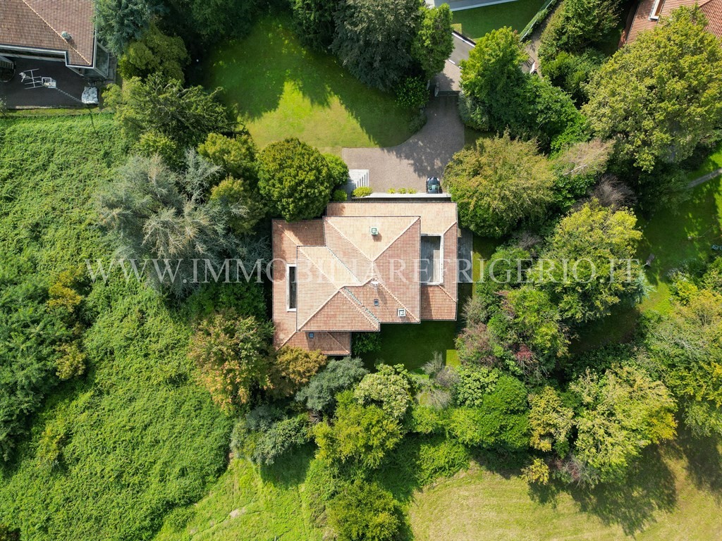 Un’abitazione che colpisce al primo sguardo grazie al suo giardino scenografico, arricchito da alberi ad alto fusto di grande pregio, che incorniciano la proprietà come una cornice naturale di rara bellezza.